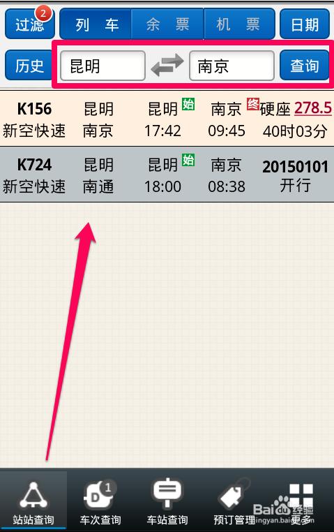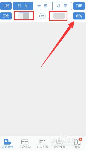 先打开软件,如果选择站站查询,在界面上输入始发站及终点站后,点击查询即可查询到所有车次。