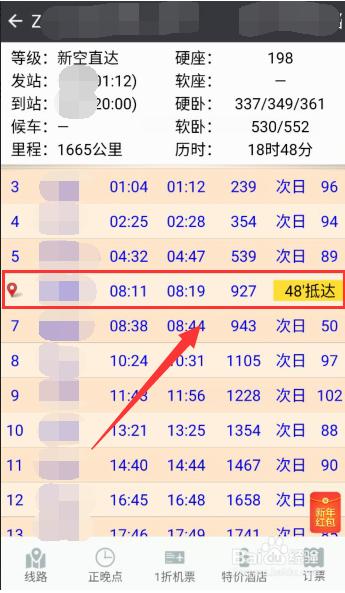 当查询到所有车次后,点击需要查看详情的车次,即可进入详细信息情况界面,查看到站情况及还有多少站。