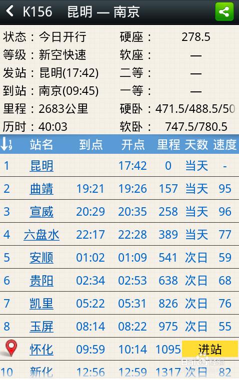 盛名时刻表如何离线查询火车到站时刻时速里程和正晚点等?
