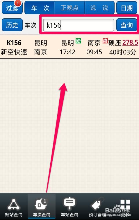 点击盛名时刻表下面的车次查询,我们可以通过输入固定的车次来查看火车具体的时间表。