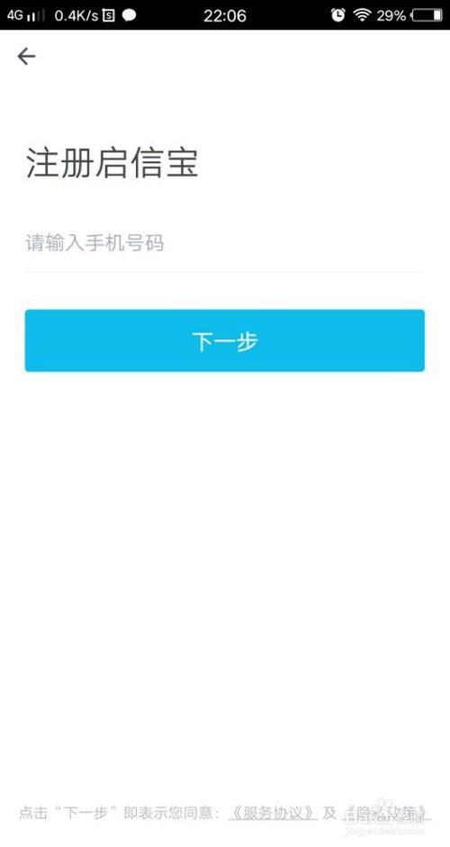打开启信宝,就可以看到登录界面,如果还没账户的可以先注册,注册时只要输入手机号码,获取验证码,输入验证码,就可以完成注册了,注册完就可以直接登陆了。