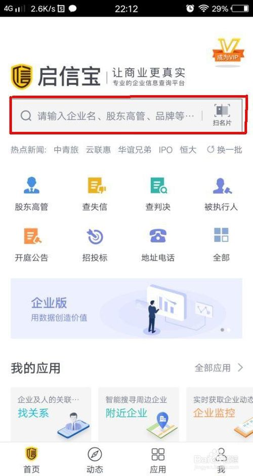 启信宝教你查企业信息、企业注册号、注册时间进入首页,在搜索框内输入想查询的企业名称
