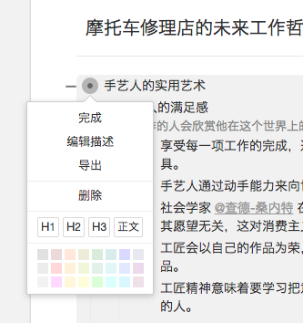 每一个主题都可以设置完成状态,所以我们也可以使用幕布来进行任务的分解与管理
