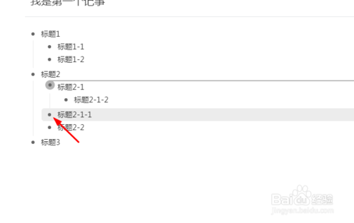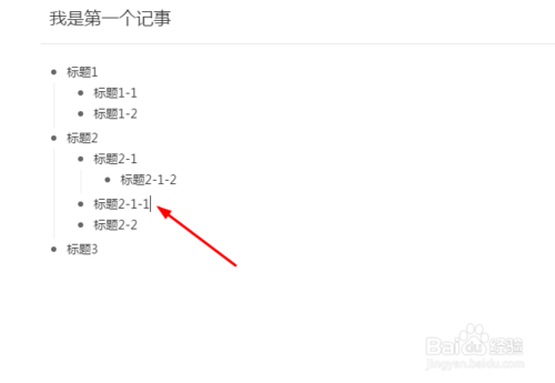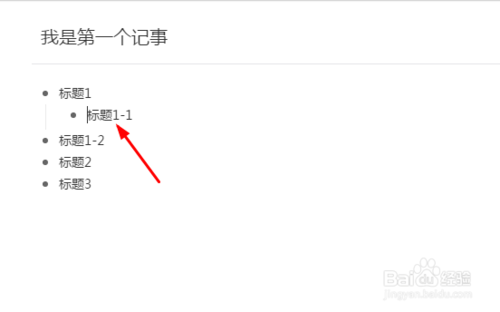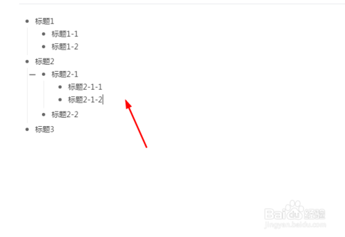 鼠标点击标题1-1,按TAB键,自动往里缩进,以子项的样式展示。