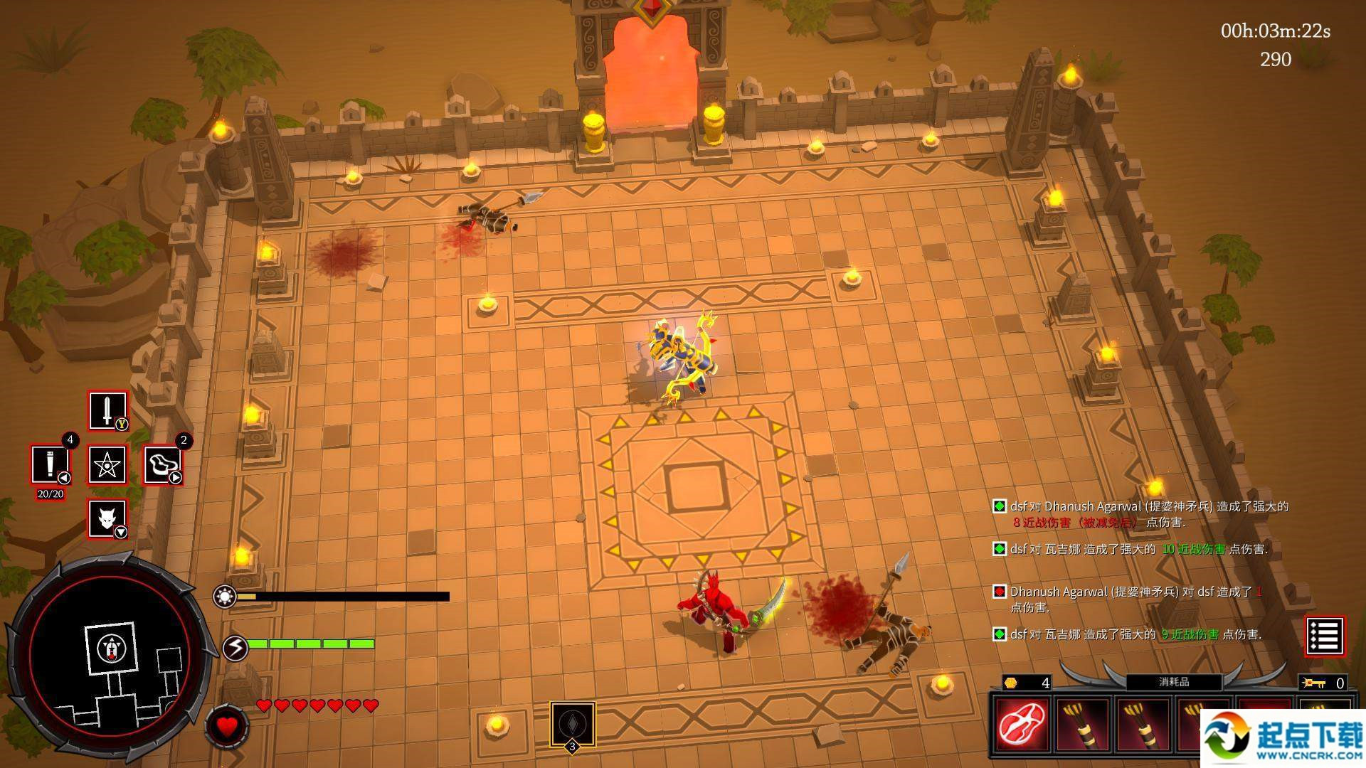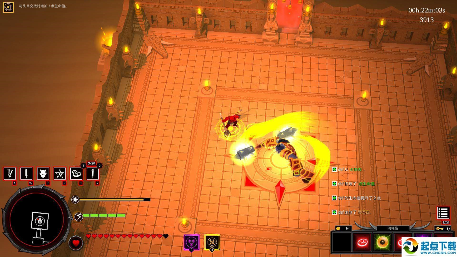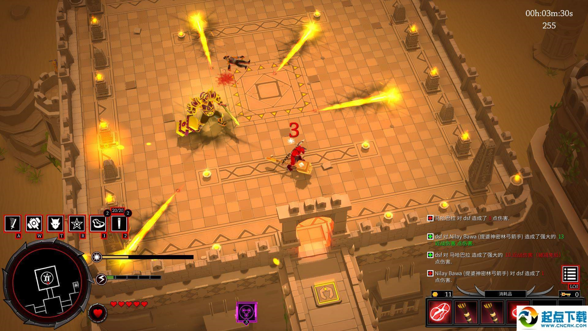 2.boss会发向四周发射带燃烧效果的箭矢,由于密度不大,非常容易躲避;