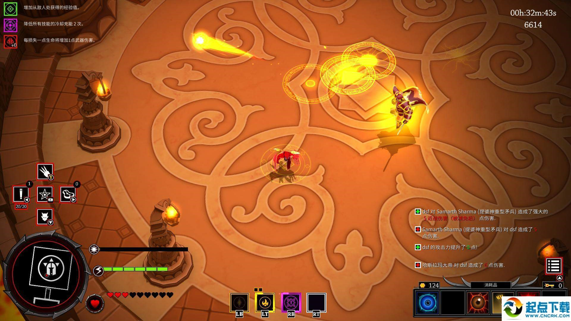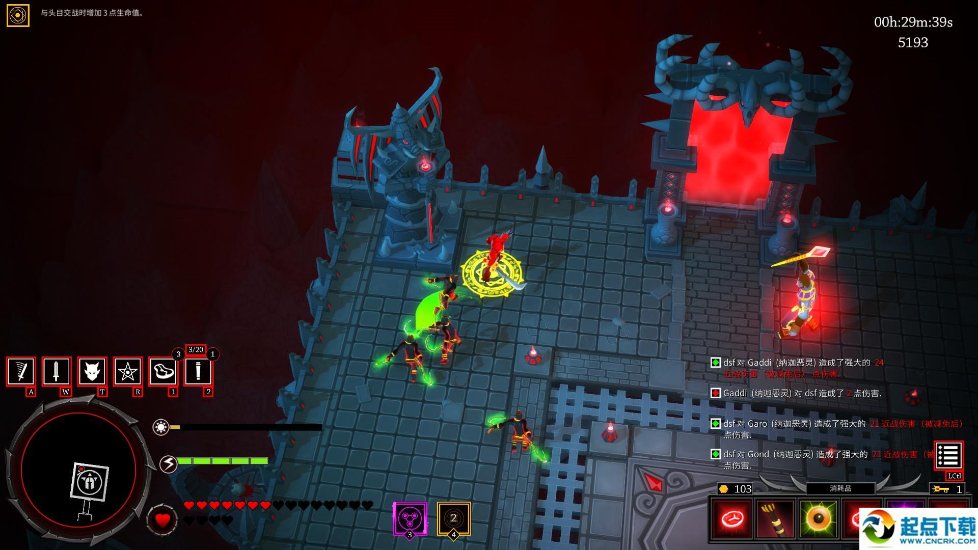 要点注意:boss召唤的小兵这次移速非常快,也很脆,被击中以后会损失耐力值,这是非常致命的,意味着你将丧失行动力,所以千万别被近身。这次的boss非常惧怕近战攻击,在其技能真空期近身造成伤害(期间笔者爆出了一把非常好的近战武器,砍一刀30血,非常爽)第五关