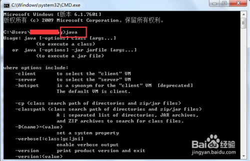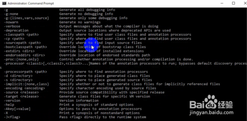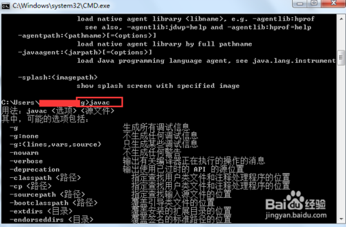 打开CMD,依次输入:java,javac,java -version进行验证,出现以下界面表示配置OK