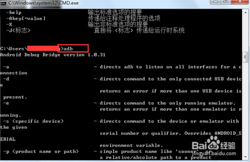 打开CMD,输入:adb,出现以下界面表示配置OK