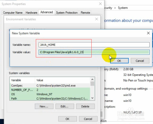 JAVA_HOME(你的JDK安装位置,如:C:\Program Files\Java\jdk1.6.0_23)