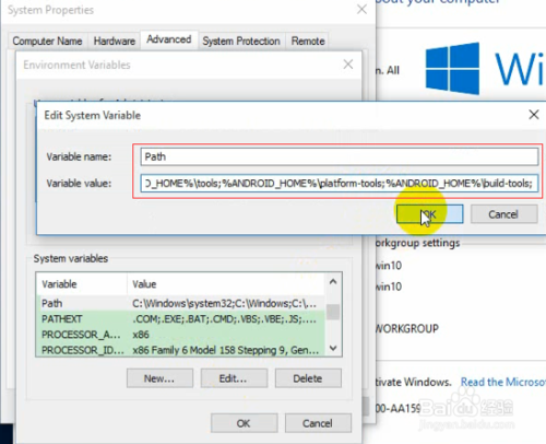 PATH(%ANDROID_HOME%;%ANDROID_HOME%\tools;%ANDROID_HOME%\platform-tools;%ANDROID_HOME%\build-tools;)