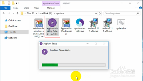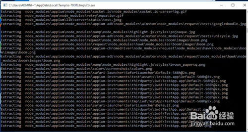 4.安装配置Appium Server,解压安装包,双击安装包,然后点下一步下一步即可,最后会弹出一个CMD窗口,属正常现象,不要关闭它!只需等待即可。安装完成后配置一下PATH的环境变量