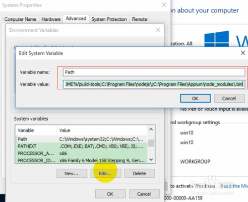 2) 把路径C:\Users\Administrator\AppData\Roaming\npm\ (appium可执行文件所在的目录)添加到环境变量Path