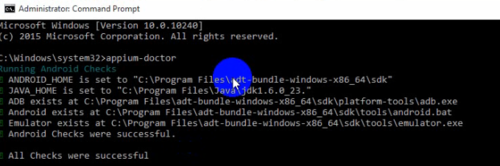 测试:CMD中输入appium-doctor,能看到All Checks were successful
