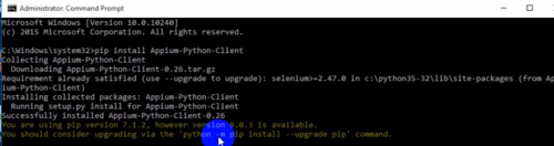 6.安装配置Appium-Python-Client,Python环境已配置,前期安装已完成。打开CMD,输入:pip install Appium-Python-Client进行安装,安装完成后表示整个Appium环境搭建成功,可以正常使用了。