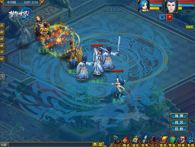 中州城是个繁华的大都市,是一个聚集了大量任务的场所。该地图有售货NPC(包含:交易中心、梦想币商人、杂货店、药店)、功能NPC(包含:张真人、领双人、燕小乙、宝图密探、帮派总管、铁匠)以及场景地图云梦泽、千魂塔一层、千魂塔二层。