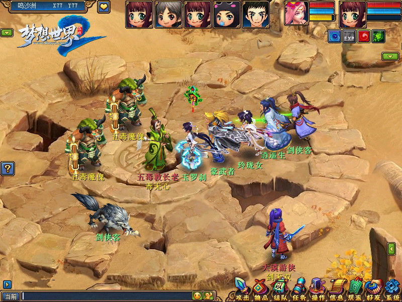 北漠城外的鸣沙洲终年黄沙漫天,人迹罕至,而魔宗五毒教自恃毒功高强,妄图让鸣沙洲各部彻底臣服,他们大举进攻,肆无忌惮地毒杀百姓。鸣沙洲部落为了守卫自己的家园,与五毒教展开了激烈的战斗。以正义之名,请各位少侠速去支援鸣沙洲,助其击退五毒教。