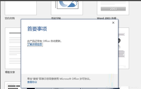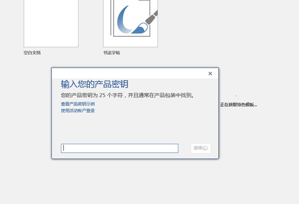 4、打开Office的某个应用,这时它会提示我们输入你的产品密钥,直接关闭这个窗口,在接下来的弹出窗口中点击【接受】,这时,我们的Office就完成了激活工作。