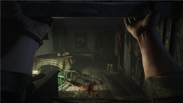 然后继续前进,可以见到一扇能被打开的窗户,从窗户进入。房内有一节电池和一捆绷带,记得收集。然后打开门闩,离开房子。