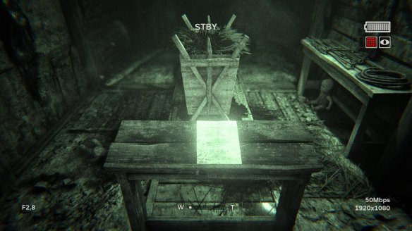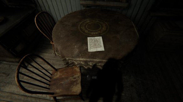 继续前进,可以看到一个鬼鬼祟祟的男人,但我们并追不上他。径直走进之前男人所在位置的左侧房间,也可收集到一个纸条。