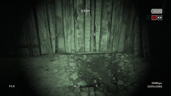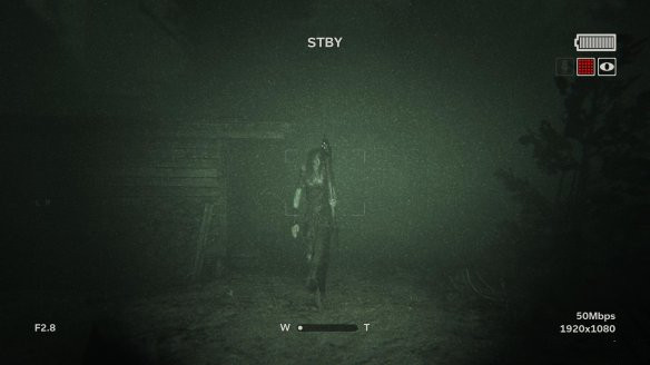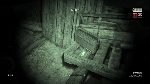 之后到达小镇,先拿摄影机录个像,然后打开左侧的房间门,可以收集到纸条。(注意,在小镇里有灯光,不需要时刻开着摄影机,请节省电量)
