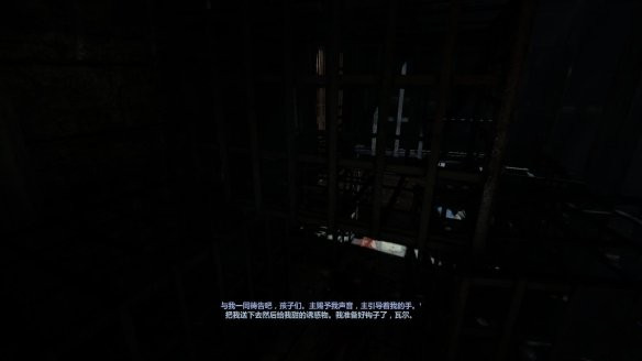 从教堂长廊的右侧小门进入,到达囚牢门口,收集钥匙,然后从下图的囚笼中间爬过,开门继续前进。(注意:囚牢中间的坑里有字条。)