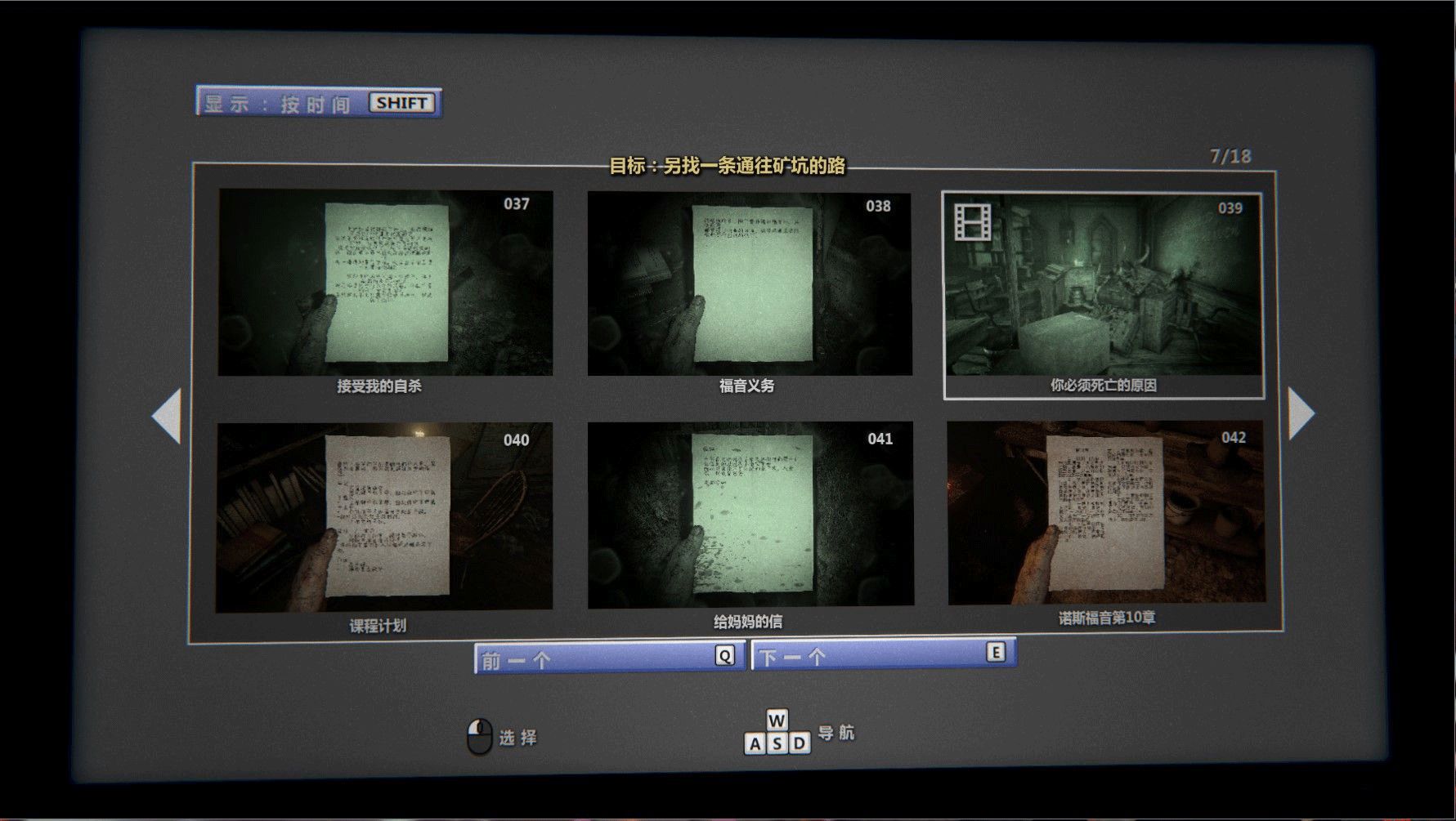 醒来后按游戏提示行动即可。来到坠毁的直升机处,拿出摄影机对准它,可以收集到录像。在前行一段路,会见到一具干尸,在此处也可收集到录像。