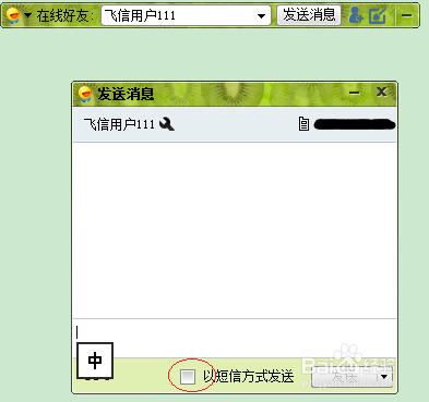 当然更重要的是和亲朋好友联系,对方不在线,可以勾选“以短信方式发送”,对方将会短信形式接受到信息