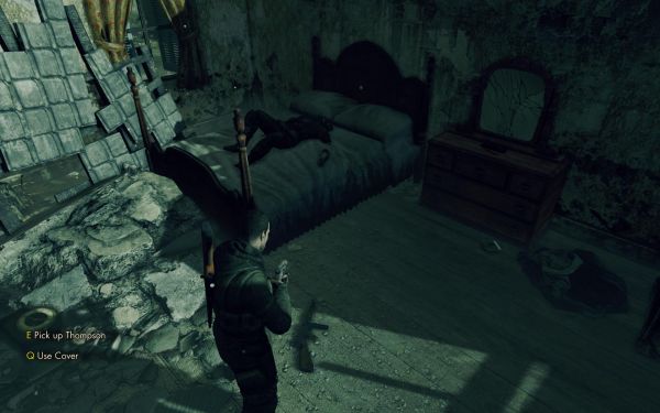 右手边第二个房子里面有一个躺在床上的僵尸,那里有一把次要武器可以拿.