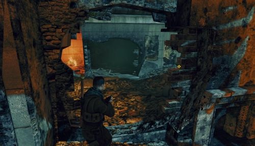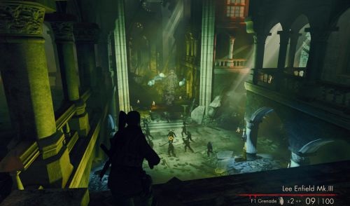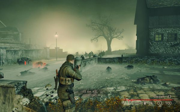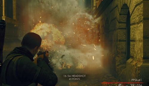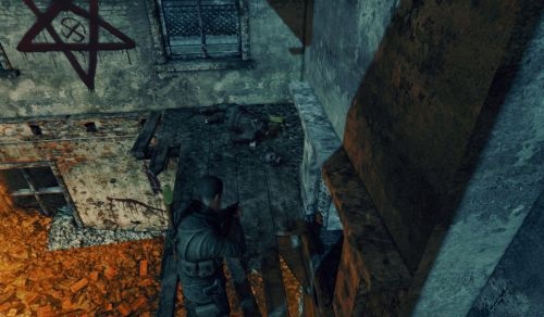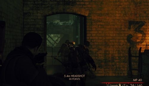 纳粹疆尸与狙击精英的玩法大不相同,狙击精英是找到一个好的至高点就开始享受狙击,但是打僵尸的重点是不要被包围,那些至高点都是死路,最好是不断迂回,而且一个地方不要停留太久,因为有时疆尸会从身后出现。