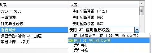 4、在显卡的控制中心将“垂直同步”改成“应用程序控制”(A卡桌面右键的第一个、N卡桌面右键的显卡控制)