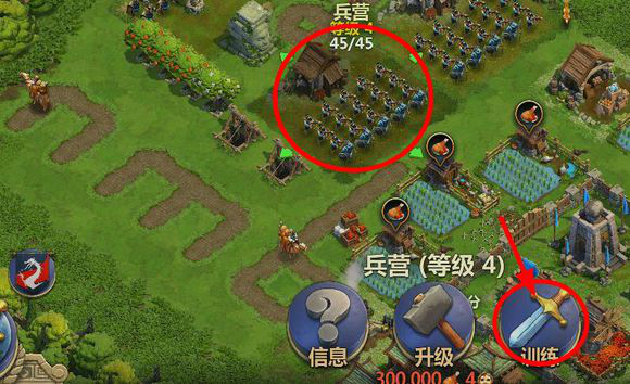 兵营:偷资源不需要太多兵,但是遇到跟我们一样资源很多的没防御咸鱼就能体现出兵多低损的优势。
