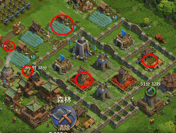 4.使劲往画红圈的资源建筑上怼。(如果能低损兵的话就好好策划下进攻过程争取全歼对方建筑有额外资源奖励)
