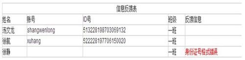 9.反馈信息中若提示身份证格式错误,表示此身份证号有误,请先进行删除,核对此身份证号,核对调整后,可由班主任在查看学生账号栏目中进行单个添加。