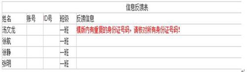 11.导入账号后,点击查看结果,反馈信息有提示:模板中有重复的身份证号(如下图)。
