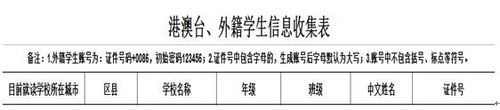 13.如学校有港、澳、台地区或外籍学生,无大陆身份证,其监护人有一方是大陆人,可以使用大陆监护人身份证号码,如监护人都是外籍人士,各学校收集好外籍学生信息反馈给教育局收集整理发送平台相关老师,我们会协助进行导入。