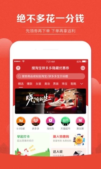 [首单0元购] 新人专享首单0元购物,免费包邮到家[每单必返利] 领券购物每单均有返利,帮你省钱到底