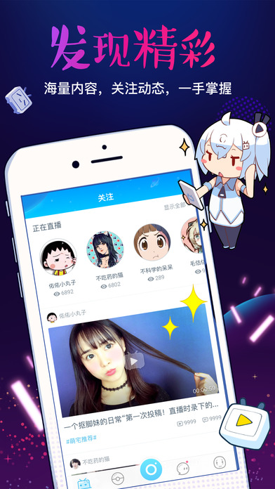 弹幕互动high翻天,美颜录屏加歌单,二次元世界不孤单。