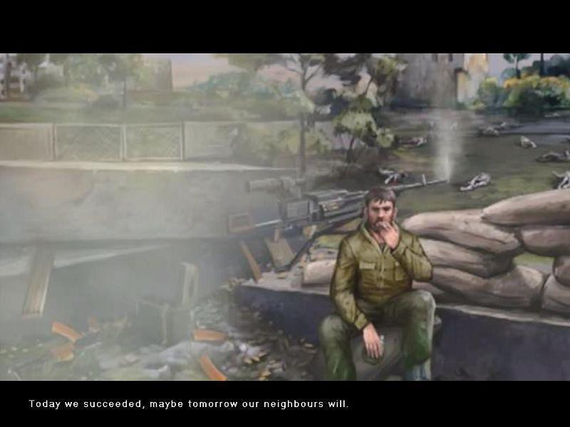9.剧情方面我不大懂(我英语不好,希望有人写一篇有关剧情的贴),还好任务是单线性的 多数是点击床睡觉后触发剧情后期是点沙发.多数人会卡在2个地方过不去,第一个是第2关要在黑市卖工具的商人处购买一包化肥和一瓶不明液件后回家点击家里面的厨柜制作炸药后才能触发炸 文化中心的剧情.第二个卡关的地方是倒数第三关的地方,(就是一到黑市会自动进入剧情看到一大票雇佣军集中在黑市门口那关.)和所有人对完话后.剧情要求你独自一个人上2楼找黑市军官交谈才能 触发剧情(很多朋友就是因为带有2个伙伴而无法触发剧情,这时只要和2个伙伴交谈让他们暂时离开黑市就行了,回家后再和他们对话招回来)