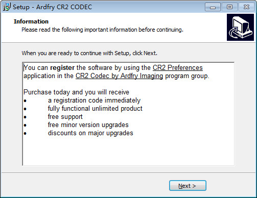 2、点击下一步出现cr2 codec的许可协议,我们这里选择i accept