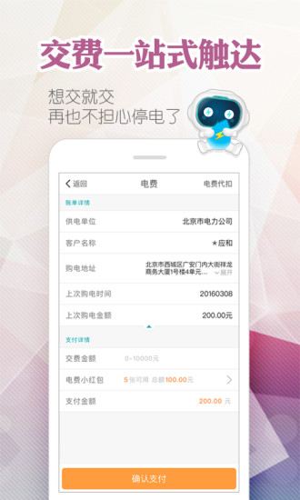 支持查询您每月的用电明细,也有趣味账单、电子账单、和电子发票等新功能,为您提供更加有趣的查询体验!
