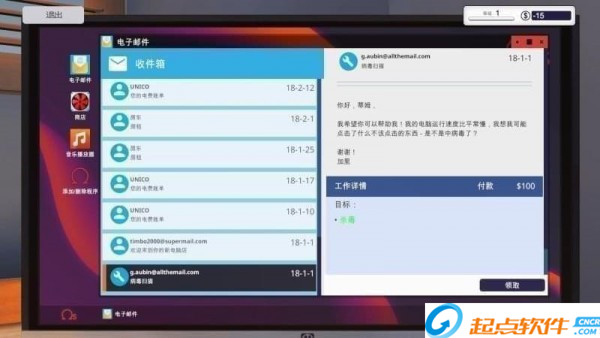 装机任务01:病毒扫描step1.调查你工作台上的电脑,查看工作邮件(领取任务),第一位客户名叫加里。