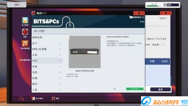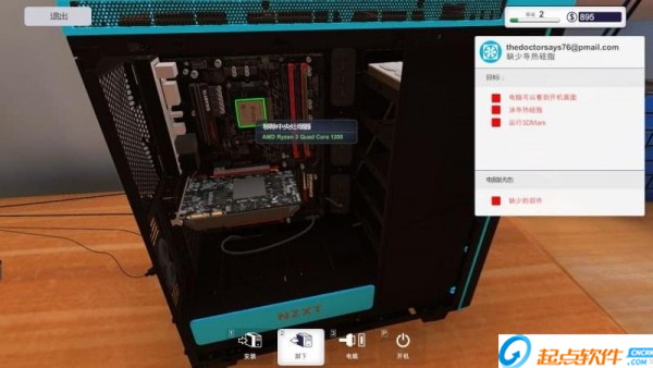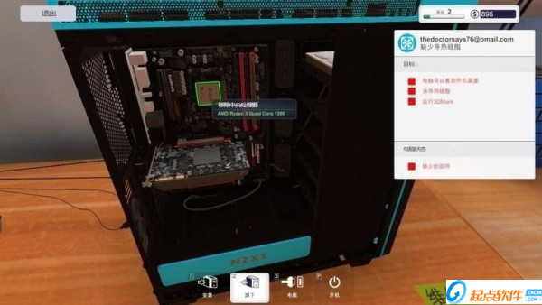 游戏的开始会给你一台空壳机箱,然后打开菜单,你就能选择想装上去的部件。不过要注意的是,游戏内设置的装机金额上限为2000美元,所以如何平衡支出就得靠玩家自己了。