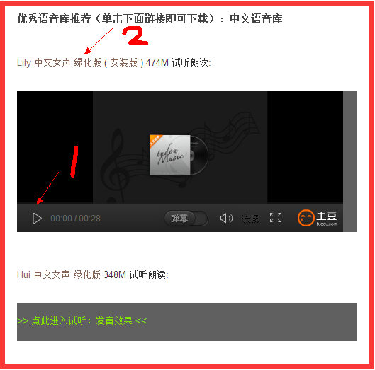 1、先试听一下各个语音人的发音效果,如果喜欢就点击下载链接进入下载。