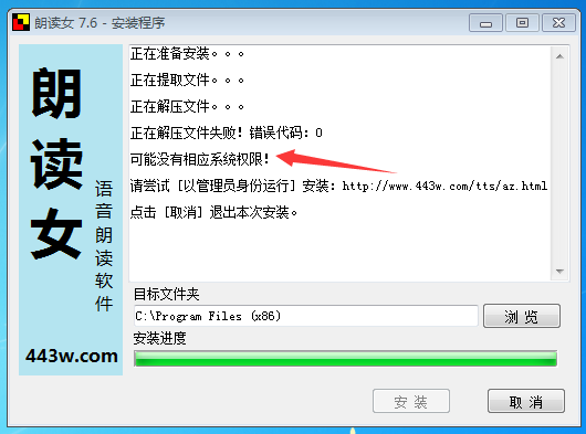 如果,朗读女安装好后,一运行就出错退出,软件无法正常打开;