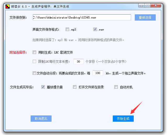 注意:文件转换生成过程中,请不要再另外运行 朗读女软件 或 其他朗读软件。