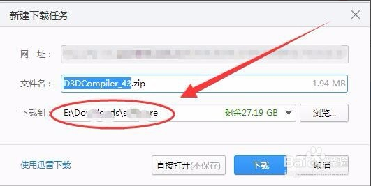 新建下载任务窗口,选择保存位置,下载文件到电脑中。
