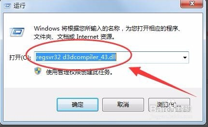 最后点击开始菜单-->运行-->输入regsvr32 d3dcompiler_43.dll后,回车即可解决错误提示!
