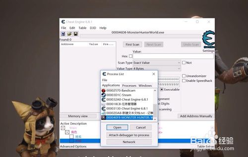 1、此方法适用steam游戏,前期准备cheat engine工具也就大家常说的ce修改了、还有就是怪物猎人世界的人物脚本
