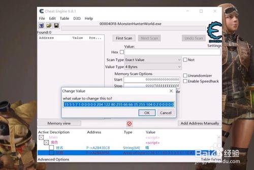 5、之后在下图确认时,打开ce按上述方法,复制出外观的数据,再打开想要修改的存档打开ce和脚本替换外观数据即可