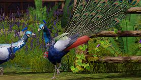 孔雀在饰品上也融入了银饰、蜡染布等苗疆特色,同时有翠兰金银等多种羽色划分,平时尾翎收在身后,在与侠士互动时就会精神抖擞的开屏。六只孔雀分别为:华羽、惊虹、素翎、璨星、银月、碧灵。